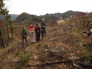 彼らにわずらわされない一角があるので、そこで昼を過ごしたのち、再び御岳町への林道に戻る。途中の大伐採地から大展望を楽しみつつ、金桜峠まで再び人の姿はまったく見なかった。