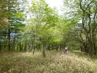それで、下るつもりでいた急斜面のルートを変更し、少々遠回りでも傾斜の緩い山腹を下ることにした。とはいっても道などない。こんなところを歩くのは初めてであろう。