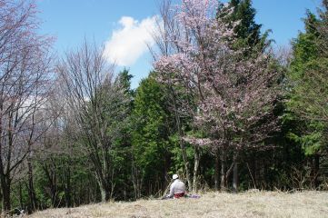 これなら、富士塚山の魅力の二大要素、桜と北アルプス展望が両方楽しめるかと思ったが、あいにく、好天ではあっても北アルプスには雪雲がまとわりつき、桜は満開にはほど遠かった。