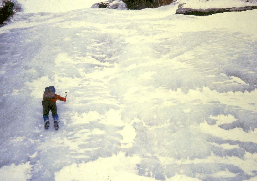 | 森林限界上に懸る奥ノ滝をソロで行く海藤嘉一。素晴らしい氷質でアックスの手応えに歓声が上がる。 ジェイムズ・フィックスの『奇跡のランニング』というランニング入門書のあとがきに「果てしない人間の歴史を逆戻りして原始まで走る。これを実行しているのがランナーだと思う…」とある。さらに「(ランナーたちは)現代人がもうほとんどやらなくなってしまったこと、つまり古代人あるいはそれ以前の原始とのつながりを確認し直す作業をしているだけのこと…」と続く。とかく走力追求、健康志向一辺倒のようにとらわれがちなランニングの世界でさえ、その奥は深い。まして、山をどう楽しもうと勝手にはちがいないが、少なくとも頂上を踏み万歳でおしまいなら、山登りの世界は薄っぺらでとうに忘れ去られているはずである。 未踏の巨峰に挑む時代が終わりを迎えようとしていた1970年代、ラインホルト・メスナーは、これからはスタイルの時代だと言った。予言の通りその後、アルパインスタイル、ポーターレス、酸素マスク無し等々の多様な挑戦スタイルのカテゴリーが編み出された。いかにして登るか、が単に頂上に立つことよりも大きな意味を持ち、意識化されるようになった。いずれのカテゴリーにも相通じるのはエコロジー的な発想。つまり小規模、軽量かつ省エネルギーで挑戦対象に挑むという方向性であり、登山資金を準備する上でも、それは現実的で自然な成り行きといえる。こうした最前線の動向は、手近な山を創意工夫して面白く登ろうという私のような市井の登山者への指針とも受け取れた。 山とランニング、二足の草鞋を履いてからは、冬が最も体力の充実している時季になった。身体というのは、ある程度本人の願望に合わせて作り直せるものだと分かったのは、ランニングのおかげといえる。年明けから始まるマラソンシーズンに備えて数カ月も長距離を走り込んで身体は完全に仕上がっている。甲斐駒ヶ岳黄蓮谷の登攀には、駒ヶ岳神社を出発し黒戸尾根の五合目から谷底へ下る厳しいアプローチが含まれ、コース標高差は2860メートル。これは吉田口の銅鳥居から富士山吉田頂上までの標高差2920メートルに匹敵する。過去にも冬の日帰りにチャレンジしたパーティーがあったとはいえ、かつての私なら尻込みするような試みだった。 私と同様、クライミングからシンプルな山登りに宗旨替えしたKを誘い、12月下旬、黄蓮谷に入った。振り出しの坊主ノ滝は氷結が不完全で巻かざるをえなかったが、滝上からは素晴らしいコンディションで氷がつながっていた。私たち以外に入山者はなかったようで、右俣に入ると踏み跡は完全に途切れてしまった。それでも申し合わせてロープを持たなかったから身軽なことこのうえない。氷のセクションでは互いに落氷に気を付けながら左右に分かれて登った。最上部の奥ノ滝を越えるとさすがにラッセルが深くなったが、先頭を交替しながら一気に登りつめて日が西に傾きかけたころ尾根上に出た。下山の途中で日は暮れたが、終日天候に恵まれて駒ヶ岳神社の駐車場から全行程13時間。それまでに冬の黄蓮谷は右俣と左俣合わせて3回登っていたが、この時ほど愉快で痛快な登攀はなかった。 ※ 手探り状態のままスタートした「山の場面」シリーズですが、結果的には70年代から80年代にかけての体験を中心に、功罪を取り交ぜて登山を花鳥風月ならぬアクティブな側面から振り返えることになりました。12カ月、最後まで退屈な話に付き合っていただいた皆様にお礼申し上げます。また、「11月」に紹介した長谷川良典は本年5月に逝去、日本の登山界は貴重な登山史の証言者のひとりを失った。それは私にとっても、もちろん一大事にはちがいなかったが、内外の登山家にも知られることがなかったようだ。昭和は遠くなりにけり、である。 |