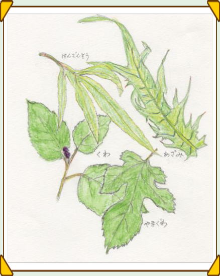 摘草というと、春の芽が出たばかりの若草を想うのが当り前かもしれないが、夏や秋にも摘んで味わうことのできるものもある。 ここにあげたものは、そのほんの一部だ。 何年も前の昔のはなしだが、梅雨が明けきらぬ頃に雲取山へ登って、雲取山荘に泊った。ほかのお客もあまりなく、小屋番(当時)の新井信太郎さんは「今日は少人数だから、天ぷらをおごるよ、何がいいかい」と、からのざるを持って戸口に立っていた。よく聞いてみると、これから材料の葉っぱを取りにいくのだという。「天ぷらにすれば、たいがいのものは食べられるよ」と。 その晩、揚げて出されたのは、にわとこ、かえで、くわ、あざみ、はんごんそうのほか、くるりと筒に巻いたささ(笹)の新芽まであった。これは、外のころもだけを、ささの移り香を愉しんで食するものなのだそうだ。 先日、7月の終りに霧ヶ峰のやまびこ谷へ出かけた。ニッコウキスゲやフウロソウ、ヒヨドリバナ、ミズチドリ、イブキジャコウソウなどの花を楽しみつつ稜線を、殿上山、南ノ耳、北ノ耳と歩いたあと、麓では、はんごんそう、あざみ、うどなどの葉を少し摘んできて、翌日の夕食に、その天ぷらを味わうことができた。 |
