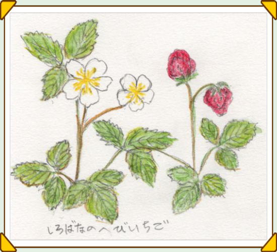 | しろばなのへびいちご(白花の蛇苺)は、沢辺の小広い平らなど、花崗岩の風化したようなさらさらの砂地の場所によく群生している。親株からランナーを出して殖えるので、次々と広がるらしい。 栽培されているいちごの原種に近い種だと聞いたことがあるが、確かに売物のいちごを小形にしたような実で、よく似ている。味もへびいちごよりずっとよく、香りがあり、バターのような滑らかさがある。 奥秩父や八ヶ岳の周辺で、休憩した時などに近くで見つけて摘み集め、味わったことがある。たくさん採れればジャムにするのがおすすめだ。 |