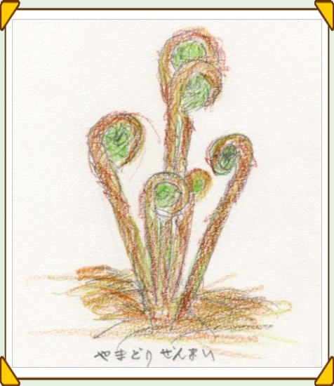 やまどりぜんまい(山鳥薇)は、明るい伐採跡などに大群落を作ることがある。本来は水気の多い所を好む植物だと思うのだが、乾燥した尾根上の平地などにもよく見られる。 芽が伸び始める時期の赤茶色の綿毛は目立つので見つけやすい。1株に7、8本ぐらいはいっせいに伸びてくるので、胞子の着いていない栄養葉の芽のしっかり巻いた柔らかいのを選んで折り採る。 綿毛を取り除いて洗い、塩か重曹を少し入れた湯で茹でて、半日ほど晒す。何度か水を変えるか、あるいは流水につけておいてもよい。 水気をよく切って、そのままマヨネーズや辛子じょうゆで食べてもよいし、炒めものにしてもよい。 ずいぶん昔のことだが、日光の民宿で「これはやまどりぜんまいを煮たのです」と、その煮びたしがお膳に出されて、やまどりぜんまいが普通のぜんまいと同じように食べられることを知った。 |