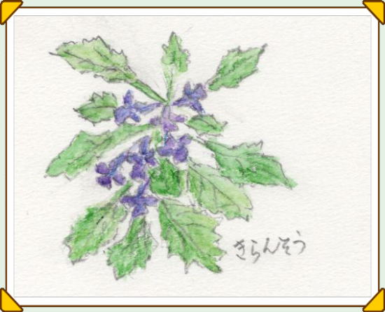 | きらんそうは、その名に当てる漢字は判らないし意味も不明だが、別名じごくのかまのふた(地獄の竈の蓋)という。これは地獄の竈を覆ってしまうほどはびこるからと聞いた覚えがあるが定かではない。濃い緑のロゼット状の葉の間から、春になると、葉の付け根に紫の花を数段重なった状態に咲かせる。全体にちぢれた毛があるので、もこもこした感じに見えることがある。 路端や土手にも生えるが、岩がちの草地を好むらしい。 峰山でかきどおしを摘んだ日、近くの集落の石積みの斜面に2株ほどの花を見つけたが、所を得た美しさなので、見て楽しむだけにしておいた。 食用には、この葉を茹でて水にさらし、マヨネーズやゴマで和える。また花は茎・葉と共に姿揚げがよいとは、前記『食べる薬草事典』に載っていた。 |