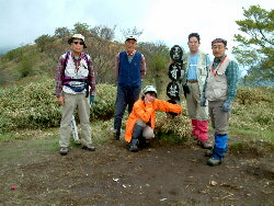 酒がさめやらぬ朝、東海自然歩道を田代峠へ。だんだん雲行き怪しくなり、頂上で降り出す。強い雨脚の中を細島峠から下る。踏跡同然だった峠からの道は手入れされていたが、急転直下の悪路。山梨側からの入山者は少ないようだが、楽しめる周遊コースだと思う。 |