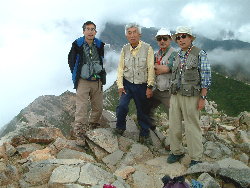 北横岳の予定だったが、予報が悪いので、より登山口の近い天狗岳に変更、唐沢鉱泉を起点に中山峠を経て周遊する。東天狗で昼食後、雨となる。相当な雨脚、濡れると気をつかう岩の道なので、鉱泉に戻るまで随分遠く感じた。霧が流れて、山の姿は迫力を増して見えた。 |