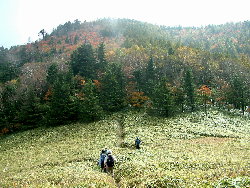 小金沢連嶺縦走(大菩薩峠) 人気のある大菩薩連嶺だが、この山域は人の訪れの少ないところである。昨今のマイカー登山では車の配置が難しいからでもあろう。今回も誰にも会うこともない静かな山歩きができた。天気は今ひとつだったが、しっとりとした秋の森を楽しんだ。縦走の最後、白谷ヶ丸で見た孤高の富士山が印象的だった。下に見える実に目障りな湖をつくったダムや送電鉄塔の工事で道路が整備され、こうやって気軽に縦走できることをどう考えるべきなのだろう。 |