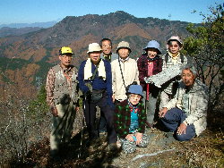 大谷ヶ丸(笹子) 日帰りの山では、たとえ小さな山でも一日一山が僕の基本方針、それはひとつの山の印象をより強くしたいという気持からである。大谷ヶ丸は普通縦走途中に通過する山だけれども、この山だけに登りたいと設定したのが、曲り沢から登り、大谷ヶ丸北峰から西尾根を下る周遊コース。葉が落ち、雪のない晩秋から初冬にかけてが絶好だと思う。実に美しい雑木林を楽しむことができた。たまたまボージョレヌーボーの解禁日、それにかこつけて頂上で祝杯をあげた。 |