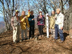 高登谷山(御所平) 文化の日の休日だから少しは登山者に会うかと思ったら誰ひとりにも出会わなかった。落葉松の黄葉はまだ残っていたが、その他の木の葉はほぼ落ちてしまっていた。高登谷別荘地からの登路も悪くはないが、相当な鉄砲登り。北東尾根は多少藪っぽいところもあるが、斜度が適度でのんびり登れる。帰りがけに降り立つ林道には白樺の純林があってすばらしい。女性に好まれるコースだというのに、今回は女性の参加者がひとりもいなかったのは残念。 |