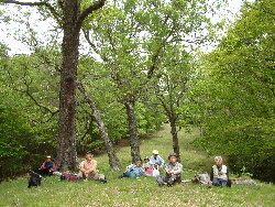 三国峠から十文字峠へと縦走するはずだったが、午後は雨の予報に、毛木平から十文字峠への往復とした。お目当てのシャクナゲだけでもという思いからだったが、あいにく花づきが今年は悪く、時期も少々遅かった。ピークをひとつも踏まないのもメリハリがないので、十文字山まで登ってみた。展望もない、三角点がポツンとあるだけの頂上だったが、いかにも奥秩父らしい森を歩くことができたのは収穫だった。午後早く登山口に戻った頃、雨が降り出した。 |