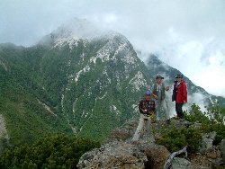 八ヶ岳南麓から見ると、甲斐駒の左に、大きく落ち込んだ仙水峠を隔てて早川尾根が連なる。栗沢山はその一番最初のピークだが、突出した山容ではないため、あまり人の口にのぼることはない。しかし場所柄、南アルプス北部、ことに甲斐駒の雄姿を望むにはこれ以上の場所はない。梅雨時だから展望が心配だったが、杞憂に終わった。むしろ雲が変幻自在に山を彩り、飽きることがなかった。頂上にいたオコジョは実にかわいい奴だった。 |