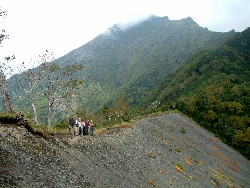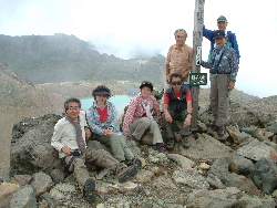 御嶽(御嶽山、御岳高原) 木曜山行始まって以来、初めての3000M峰である。車で2時間半あまりで田の原の登山口に到着できるとはいえ、その奥深く山に分け入っていく雰囲気はさすがに霊山である。道路わきに林立するおびただしい霊人碑、かつて御嶽に歩いて向かった人々の、山を数限りなく越えてやっとこのご神体の山を目にしたときの感激はいかばかりだったかと想像される。珍しく白装束の信者にひとりも出会わなかった。かつての記録はここにも書いた。 |