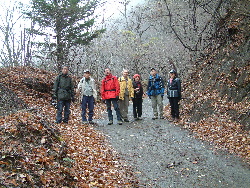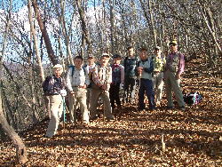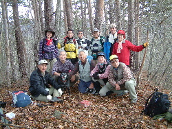 クリスタルラインが東側から樫山峠を越えると、八ヶ岳の領域に入ったなという感じがする。その八ヶ岳の手前にこしゃくにも立ちはだかる山が高畑山である。点名は「泉海道」という。木曜山行最後の山は、午前中で歩いてこられる山ということでこの山を選んだ。南麓の日吉神社から登り、北甲斐亭の方向への尾根をたどって周回した。ゆっくりのんびりと2時間あまりの行程だった。午後はロッジに戻っての納会、にぎやかに今年の山行を締めくくった。