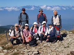 小遠見山(神城・白馬町) 大町が近づくと白馬三山が雪化粧しているのがはっきりとわかった。ゴンドラ駅は1500mだが、山梨県の同じ高さとは雰囲気が違う。紅葉は今ひとつで、ナナカマドの赤もくすんでいる。先週の台風のせいか、ダケカンバの葉はすっかり散っていた。頂上からは全貌を現した五竜岳がすばらしい。南へと連なる北アルプスの稜線には、ちょこんと槍の穂先がとがっている。底抜けに青い空にはパラグライダーが舞っている。申し分のない眺めの中で昼のひとときを過ごした。 |