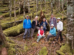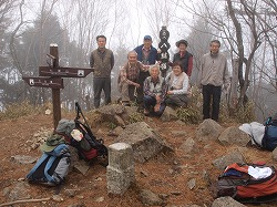 梅ヶ島での1泊山行であったが、初日は雨で山は中止とし、遅い出発にした。大雨で安倍峠が通れず、倍の距離を走ってたどり着いた。気持ちのよい温泉に浸かり、盛大に飲み食いして夜は更けていった。朝起きてびっくり、青空が広がっていた。静岡側は安倍峠まで通行可能だというので八紘嶺に登ることにした。登るにしたがって霧が出て、結局展望は得られなかったが、途中、ブロッケンも見ながら静かな山をワイワイとにぎやかに登った。