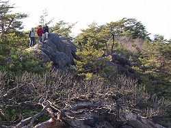 三国峠ではもう初冬といってよかった。峠の武州側に立つと、目の前の両神山の怪異なシルエットが次第に立体的になり始めていた。1700mを越えているというのに寒くはないのは助かる。梓白岩のすぐ南の岩峰ではこの稜線最高の展望を得ることができた。十文字山の登りにかかると、あたりは針葉樹の深い森になった。倒木はことごとく苔に覆われている。そんな中に小さな広場があったので、車座になって昼休みとした。
