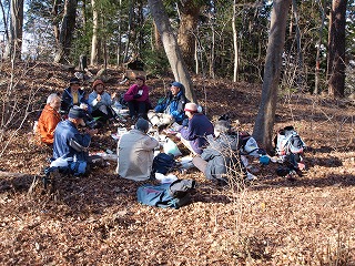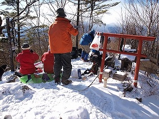 うまい具合に好天となった。正月も7日になって山の上の神社まで参る人はいない。1時間かけて登り、神社に参ったあとは、すぐそばの平地に車座になって、新年のお祝いをした。