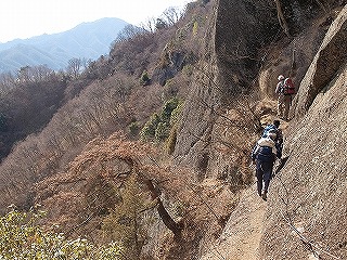 稚児落しへの径に入ると、観光気分は一転、足元に気を使うようになる。短いが急な上下が連続し、ロープや鎖も次々に現れる。