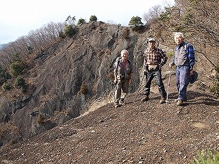 かつては、この奥ノ院といわれるピークを頂上とし、私のガイドブックでもそうしているが、細かいことを言えば少し南の三角点が少し高いので、今ではそこが頂上とされているらしい。我々は細かいことにはこだわならないので、展望のいいこのピークを頂上とし、昼食とした。富士はくっきりと見え、遠く駿河湾が光っている。