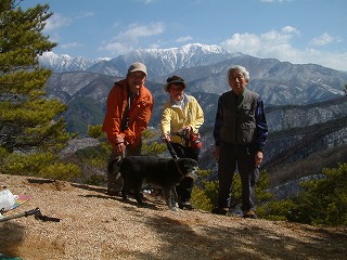 最初、地図の破線らしき径は見当たらなかったが、主尾根に乗ってしまえば、そこそこの径が通じていた。雪は適度に硬く、快調に高度を上げた。三界山まで標高差はないが距離はある。途中、仙丈と甲斐駒の眺めのすばらしい砂礫地があった。これ以上のロケーションはもうないだろうと判断、そこで昼食をとることにし、荷物を置いて頂上を往復することにした。