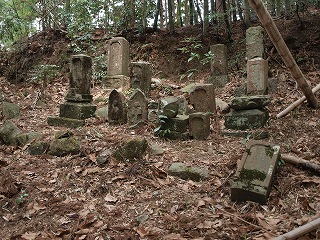 私はこの2月に歩いたばかりだというのに、逆コースになると大子への入口がよくわからず、土地の人に教えてもらった。入口さえわかれば大子へはいい道が続いている。大子には一軒だけがかろうじて家の形を残しているが、もう常住はしていない。集落の裏手には、おびただしいといってもおかしくないくらいの墓や石仏があって、この集落の古い歴史を感じさせる。