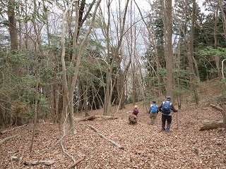 下りは西尾根にとったが、これは車利用で周遊するのに都合がいいというのもさることながら、こういった長い尾根が私の好みだからでもあった。下りやすい径の条件は、傾斜がゆるく、地面が柔らかく岩場がないということだが、傾斜だけは地形図から読めるものの、あとは行ってみるまでわからない。