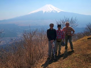 春の午後には富士山は霞んでしまうのが通例だが、これだけ近いとさすがにまだ充分はっきりと眺められる。誰もいない頂上を独占して、遅い昼休みとなった。時間があったら鹿留山へもという考えは、もう誰の頭からも消えていた。