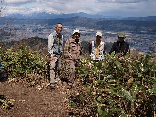ところどころで開けた展望はもちろん頂上で圧巻となった。先行者はおらず、残雪の山々の展望をほしいままにしての昼休みとなった。結局、我々と、遅れて到着した2人だけがこの良き日に福地山に登ったすべてであった。