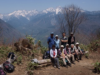 去年の秋にこの山に登ったとき、そのすばらしい展望や、山の樹林の良さに、次は山が新緑で北アルプスに残雪がたっぷりあるときにぜひ来たいねとはやくもその場で計画が決まった。