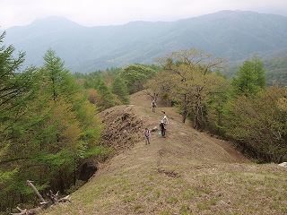 新緑を楽しもうという狙いはずばりと当たった。芽吹いたばかりの木々の色が実に様々なのがよくわかる。しかし、防火線の登りでは地面のワラビばかりに目が行き、周囲の光景を見るのがおろそかになった。