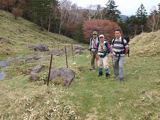森林限界を越える山でもないかぎり、いよいよ森が深まるのがこういった場合の通例だが、やがて行く手の空が広くなって、なんとものびやかな草原へと導かれる。焼山沢コースならではの急転である。