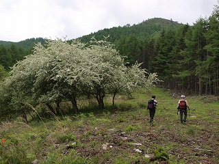 去年の7月後半にゼブラ山に登ったときはすでに真夏に近く、緑も濃かった。そこで今年は同じルートをひと月早めて歩き、初夏の高原、ことにズミの花を楽しもうという計画であった。八島湿原からの道標ができてからはこの山を訪れる人も増えたが、北側からこの山に登ろうという人は皆無に近い。