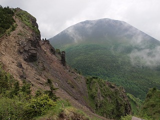 外輪山に出る直前までは浅間山本峰(細かいことを言えばここでは前掛山となるのだろうが)が隠されているのがこのコースのいいところで、こういった巧まざる演出はコースの価値を上げる。雲が流れて浅間山の山肌を通り過ぎていくので、すっきり晴れているよりは変化に富んだ風景を楽しむことができた。