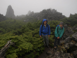 | 北横岳から三ツ岳へ(蓼科) 台風一過の青空が拡がり、富士や南アルプスや八ヶ岳がくっきりと秋空に並んだ。朝の予報では山梨県北西部は朝から曇りで、午後は雨となっていたのだから、いったいどんな理由でそんな予報を出しているのだろうと思った。 早朝名古屋を出てきたNさんは諏訪あたりは天気が悪かったのが、山梨県に入ると一気に好天になったという。となるとこれから向かう北八ツの天気は悪いのだろうか。しかし、こちらから眺める南八ヶ岳にはほとんど雲はないのだ。 とにかく計画どおりに横岳ロープウェイに向かう。ところが、目指す北横岳が見えるあたりまでくると、そのあたりはすっぽりと雲の中なのであった。 ロープウェイの駅の広大な駐車場は霧の中でがらんとしていた。100人乗りのゴンドラに乗ったのは我々3人だけ、降り立った上の駅前にも人影はまったくない。ときおり雲の中に太陽が見えるので、さっと雲が取れる可能性もあるだろうと北横岳へと歩き出した。 晴天なら観光客のたむろする坪庭に人影皆無なのも珍しい風景ではある。途中、北横岳ヒュッテの人ふたりとすれ違ったほかには誰にも会わぬまま北横岳に着いた。展望皆無で風が強いので早々に降る。 今日の核心部は三ツ岳だが、その手前で本格的な雨となった。引き返すのも癪なので、雨具を着けて岩場をたどるという厄介なことになってしまった。晴れていても気をつかうところなのに、雨に濡れた岩には手こずらされることになった。 ともかくもほとんど休まないまま三ツ岳と雨池山を越えてロープウェイの駅に戻り、そこでおそい昼食とした。ガランとした休憩場にも誰ひとりいない。こちらが乗車しないまではロープウェイも動かぬ態で、つまり登ってくる客は皆無である。 結局帰りのゴンドラも我々3人のみ、すれ違う上りのゴンドラも乗員のみだった。山もロープウェイも終日貸切とは、これは前代未聞の経験ではないか、それもこの天気のおかげと、まるでへこたれない我々は喜んだのであった。 帰りの車道は富士見あたりでは台風がまた来たのかというような豪雨だったのが、小淵沢を過ぎるとうそのように道路は乾いて日が射しているのだから、今日に限ってはてんで方向を誤ったわけだが、しかし稀有な経験ができたのは晴天以上に印象に残ることであろう。 |