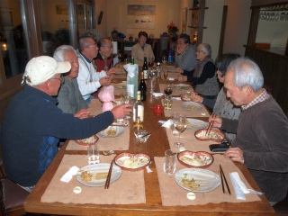 午後はロッジにて今年の山行の画像を見て楽しみ、夜にはここ数年恒例の会場となった方々亭に13人が集まった。貸切だから誰に遠慮もない。飲めや歌えで夜は更けていったのであった。