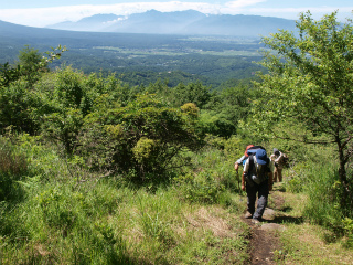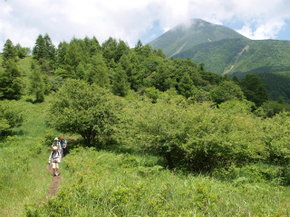 この東急リゾートからのコースは6月の初めに横山夫妻と歩き、その新緑の美しさに驚嘆したものだが、それからふた月もたたないうちに山は完全に夏の緑になっていた。朝からぎらぎらと夏の太陽が照りつけるが、出発点がすでに標高1600mとあっては、木陰に入ればヒンヤリと涼しい。