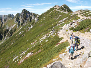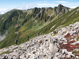 山も十年ぶりともなるとまるで記憶なんてあやふやである。こんなに歩きやすい径だったかしらというような径が4合目くらいまでは続いた。大滝頭から少々登って小仙丈岳のハイマツ斜面に出ると、いよいよ高山気分が増す。