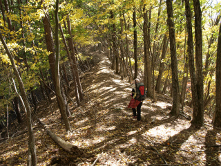 笹やスズタケが繁茂していないのがこのあたりの山域の美点で、尾根らしい尾根はすべてさほどの苦労もなく歩けるのはありがたい。