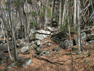 昼休みをして、さあ下ろうという時間になってもまだ午前中であった。下りにとったルートも岩が面白い。この岩塊斜面は地質学的にも貴重であることを読んだことがあるが本の名前を忘れてしまった。
