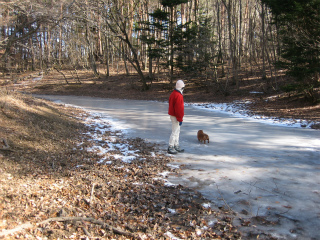 林道を横切って源次郎岳への径に入ると、また足跡はなくなった。稜線の東側は一面の落葉松だが、西側には自然林が残っており、径がそちら側にさしかかると雪と青空と冬枯れの林の配剤の妙にうっとりとする。