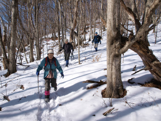 心配していた雪の量はさほどでもなく、快適に高度を上げていった。朝方は少々白かった空も真っ青に変わった。絶好の雪山ハイキング日和である。