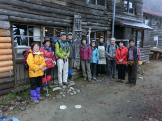 小屋に泊ったのは我々以外には4人だけで、他の人にとって10人の団体はさぞうるさかったことだろう。8時消灯、夜半まで屋根を打つ雨音が聞こえていた。