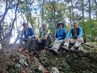 時間があるので大沢の頭まで行き、幕岩に登って昼休みとした。幕岩では富士が少しだけ頭を見せた。