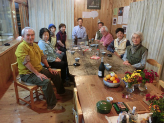 きのこ汁を注文してしばし歓談、そのきのこ汁がうまかったので、皆さん、その後のきのこ狩りに一段と目の輝きが増した。