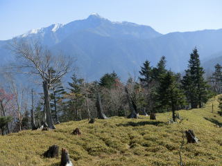 それにしても奥御坂稜線の樹林の良さは出色で、春秋の盛りにこそ歩きたいものだが、しかし葉の落ちきった季節、枝越しに富士と白峰を振り分けに見ながら歩く気分のなんという良さだろう。