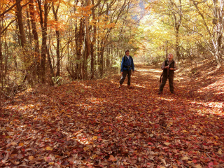 芦川渓谷は今しも紅葉の盛りである。径の落ち葉もまだ色を残しているので視界がすべて錦に染まる。主稜線に出るころにはさすがに木々もほとんど葉を落としていたが、こんどは展望を楽しむことができた。