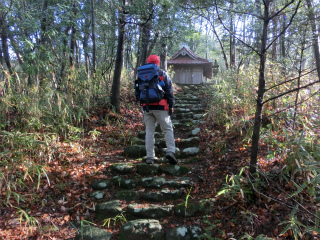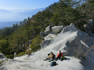 | 醍醐山(切石) 10年前に鳩打トンネルから初めて登ったときには、頂上のテレビ塔までは整備された径が続いていたが、テレビ塔のすぐそばにある三角点へは藪を分けて探しながら達したものだった。 そこから南側の太子へ下るのも、頂上一帯がかなり広いうえに、人工的とも思える地形に錯綜する、ケモノのものか人のものかわからない踏跡を、これが正解だと見つけ出すのがなかなか厄介であった。 要するに小粒でもピリリと辛いといった山だったわけだが、その後登るたびに赤テープの類も増え、頂上三角点付近は、かつてはびこっていた藪はどこへやら、雰囲気のいい林になって、それはそれでのんびり滞在するには好適な場所であった。 最後に登ったのは3年前だったが、道標の類はほぼ皆無で、まだ好事家向きといった雰囲気は残していた。 私と同じ山岳会で下部に住む磯野さんがこの醍醐山の売り出しに尽力していると聞いたのは去年のことで、どうもそれはこの山の標高が東京スカイツリーと同じということが関係していたらしい。身延線の甲斐常葉駅から下部駅まで道標が整備され、なんと「希望の醍醐山」なる唄までつくられたという。 https://www.facebook.com/daigoyamashimobeonsen ひねくれ者の私は、それなら整備がされていない方向から登ってみようと思ったのが昨日の木曜山行の計画となったのであった。すなわち真西の麓、広重の絵にもなった屏風岩へと延びる尾根を登ることにしたのである。 この尾根はかなり前から気になっていて、それは南北に三つ並ぶ神社記号がその末端にあったからで、この三社を経由して登れば面白かろうと思っていたのである。今回は新年最初の山行だから、時期的にもぴったりだった。大常連のおとみ山があいにくのアクシデントで参加できず、山歩大介さんとの二人旅となった。 みぞれのような雪が朝方の冷え込みで凍って、我が家の付近では相当危険な路面状態であったが、そんなことがまるでウソのような暖かい醍醐山の麓である。それもそのはずこのあたりは標高200mくらいしかないのである。 鉄塔巡視路で一色川を渡ったら、それからそれていく最初の神社の参道はすぐに見つけられた。神社の名前はわからない。地図に記号のある階段は下のほうはコンクリートでさほど古くはないらしい。上部は自然石の石段となった。社殿があったのはここだけで、その上の神社記号にはかつての社殿が廃材の山になっており、一番上の記号には石祠と石灯籠が残っているだけだった。 この三社を巡るために少々アキレス腱を伸ばして径なき斜面を這い上がったが、尾根をつかまえてからは意外なほどのいい径が途中までは通じていた。 頂上近くなると樹林の雰囲気が良くなるが、三角点付近には道標やら何やらがやたらと増えていて、かつての何もない良さは失われてしまった。そう思うのは私がそれらのものがなければいいと思う人間だからだが、この考えは地元の人が願う振興とは相反するものであることは重々承知である。旅人とは無責任なものだとは思う。 陽だまりで早い昼食を摂ったあと鳩打トンネルではあっという間の下山であった。車を回収して遠回りでドライブして帰りがけの温泉に浸かったのがまだ1時半だったのだから、木曜山行でも屈指の行動時間の短さであった。 |