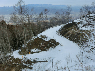 なんと車道がぐねぐねと大峠への斜面を蛇行して延びていた。これにはびっくり、測量はこのためだったのである。たった2年でこんなになってしまうとは。