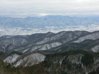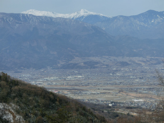 見下ろす甲府盆地が真っ白で、これはなかなか得がたい光景であった。甲府の積雪は史上何番目かというのだから、この光景が見られただけでもここまで来た価値があったというものだろう。
