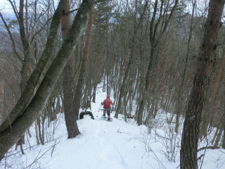 スノーシューを履いたほうが楽なのかそうでないのかというのはなかなか難しいが、昨日の場合はやはりスノーシューがあったほうが楽だったろう。ことに雪を蹴散らして下るのは気分がよかった。
